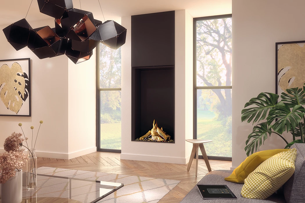 Was den Maestro 75 Tall Eco Wave besonders auszeichnet, ist die atemberaubende, hohe Glasscheibe. Diese ermöglicht Ihnen, die Flammen aus verschiedenen Blickwinkeln zu betrachten und schafft eine bezaubernde Verbindung zur Natur, ohne dabei auf Komfort und Effizienz zu verzichten.