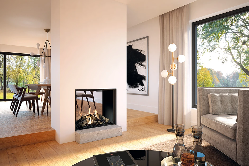 Eines der beeindruckendsten Merkmale dieses Gaskamins ist das ausschaltbare zweite Brennersystem, der Dynamic Flame Burner®. Damit haben Sie die Kontrolle über die Intensität und Darstellung der Flammen. Dies ermöglicht es Ihnen, die Atmosphäre in Ihrem Raum nach Ihren Wünschen anzupassen – von einem sanften, romantischen Schein bis hin zu einem lebhaften und beeindruckenden Flammenspiel.