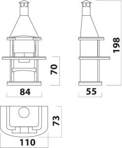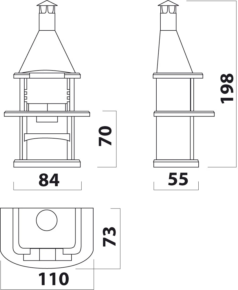 - kann mit Holzkohle und Holz (ca. 5 kg) befeuert werden