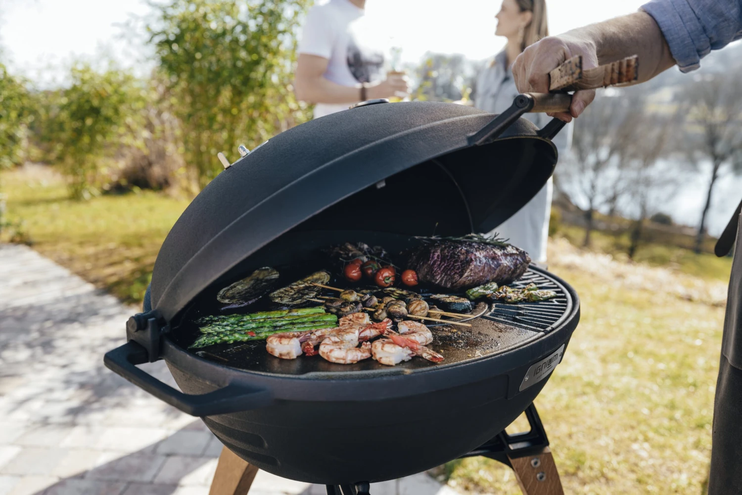 Das Gourmet-Set beinhaltet eine Feuerschale, einen Adapter, einen Kohlekorb, lange Holzbeine und ein Hebewerkzeug mit integriertem Flaschenöffner. AuĂźerdem gibt es zwei ovale Grillroste, ein runder Grillrost, eine ovale Grillplatte und eine GemĂĽsepfanne sowie ein gusseiserner Deckel. Der Deckel sorgt dafĂĽr, dass auch größere FleischstĂĽcke schön saftig bleiben. Zusätzlich verfĂĽgt der Deckel ĂĽber ein Thermometer, mit dem behält man stets den Ăśberblick ĂĽber die Temperaturentwicklung im Inneren des Grills.Â