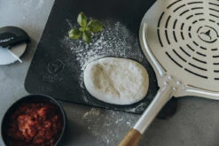 Der Schieber kann natĂĽrlich auch fĂĽr andere Teigwaren wie Flammkuchen, Brot oder Focaccia eingesetzt werden.Â