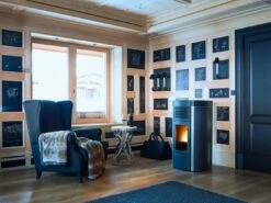 - Rustikaler Pelletofen in verschiedenen Farbvarianten: dark, bordeaux, white, silver