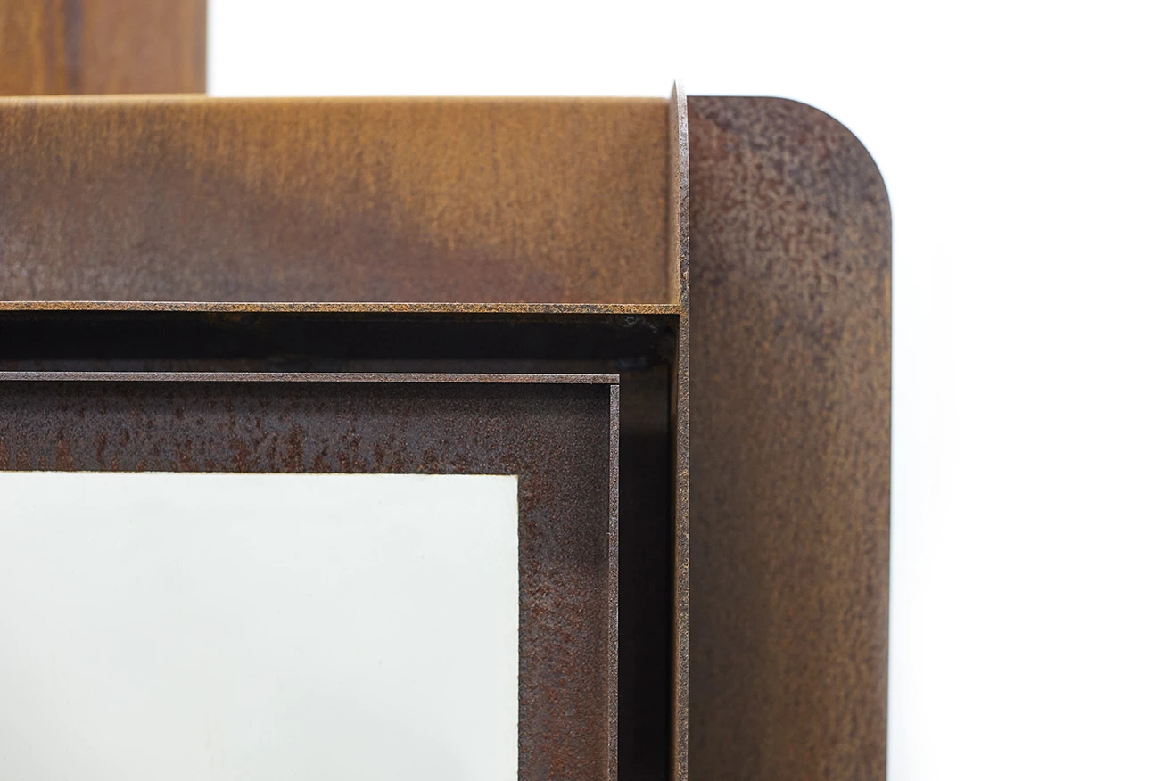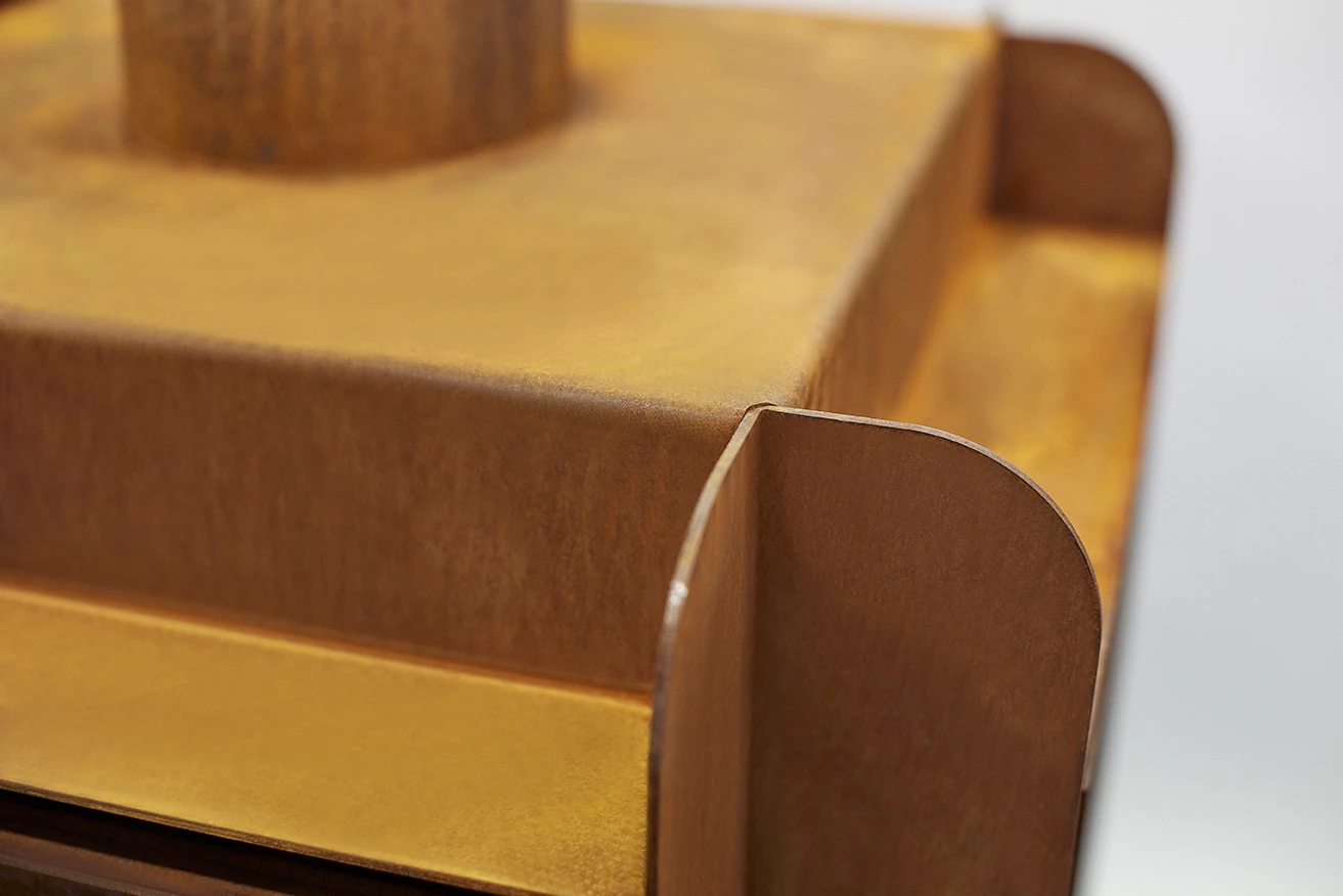 Artikel wird in stahlgrau ausgeliefert und entwickelt nach einigen Wochen eine besondere Rostpatina, die den Stahl vor der Durchrostung schĂĽtzt.
